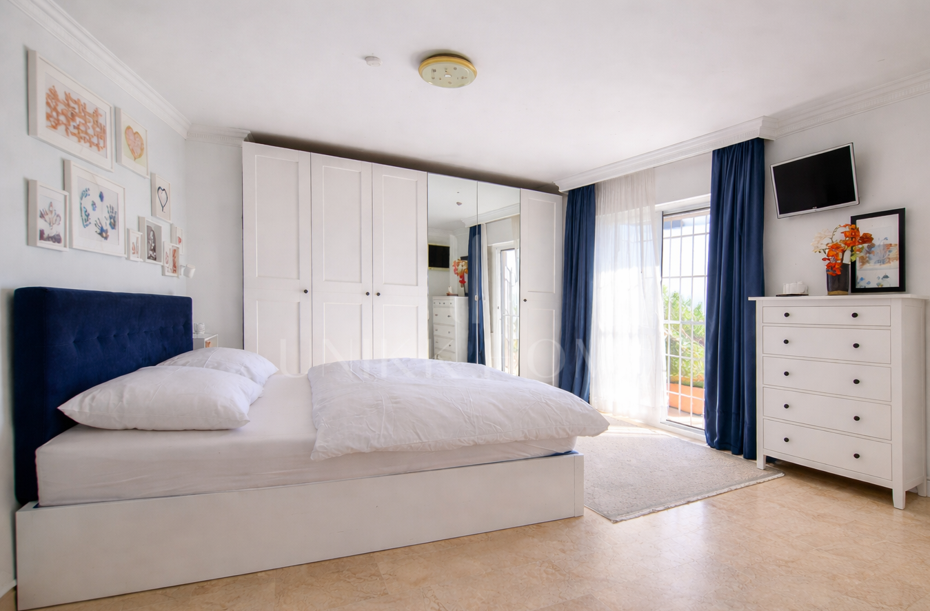 The upper floor offers a versatile space: a spacious fourth bedroom, currently used as a study or office, which opens onto an 18 m² solarium terrace, renovated in 2022. From here, you can enjoy unobstructed views, with even a glimpse of the sea and the Rock of Gibraltar on clear days.