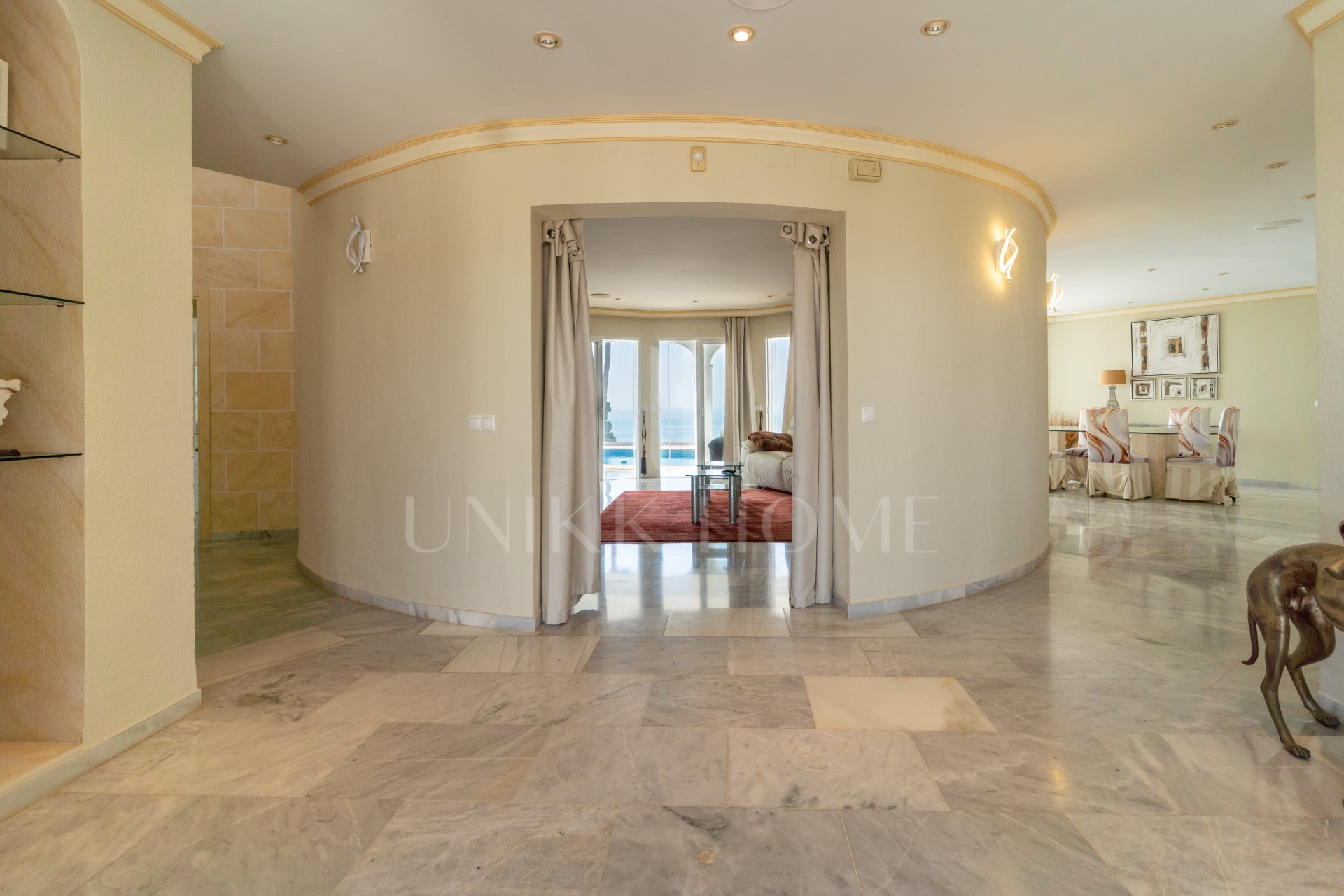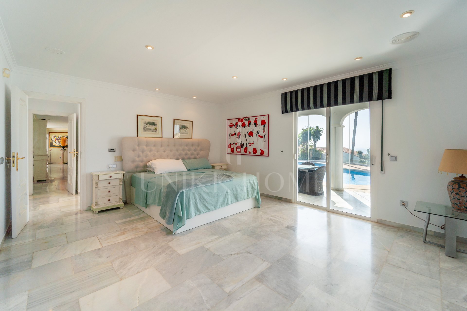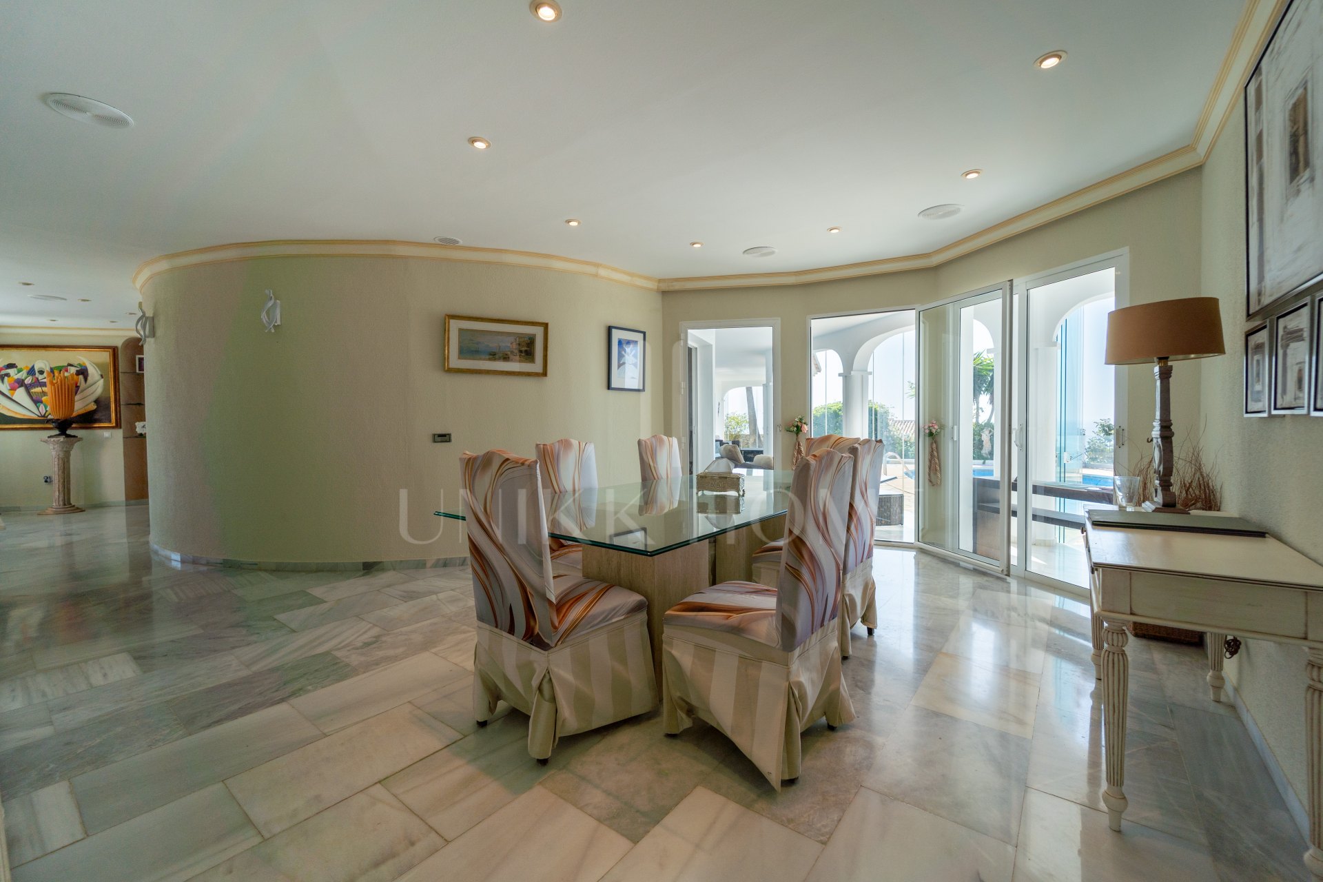 This stunning villa is situated on a large and private plot offering breathtaking panoramic views of the Mediterranean.