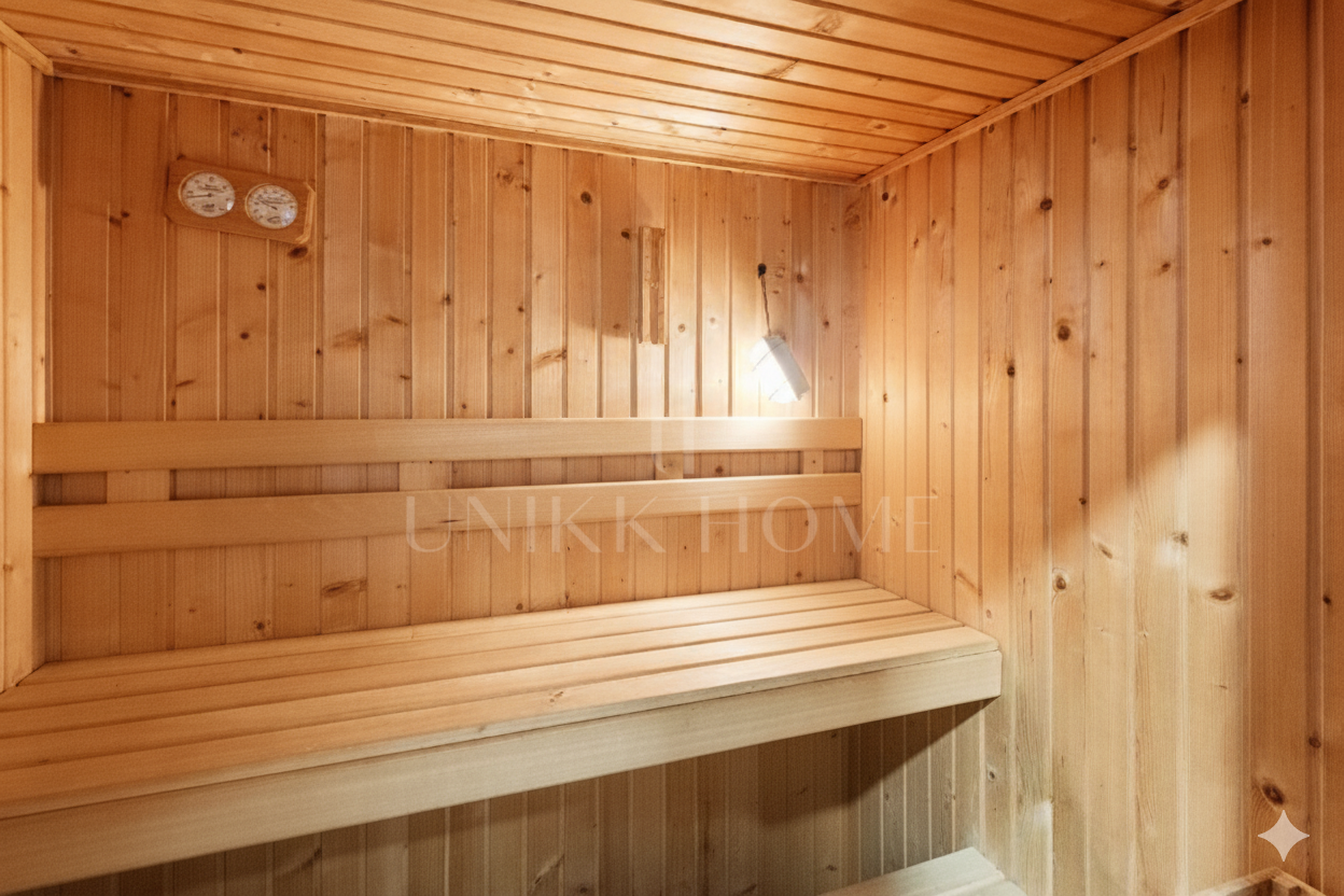 The apartment includes a storage room and a parking space. The development features elevators, mature gardens, a pool, and a gym, as well as a sauna for residents’ enjoyment. This is a community located right in the city, just steps from the beach, very family-oriented and welcoming, where many residents live year-round and know each other, creating a close-knit and tranquil environment.
