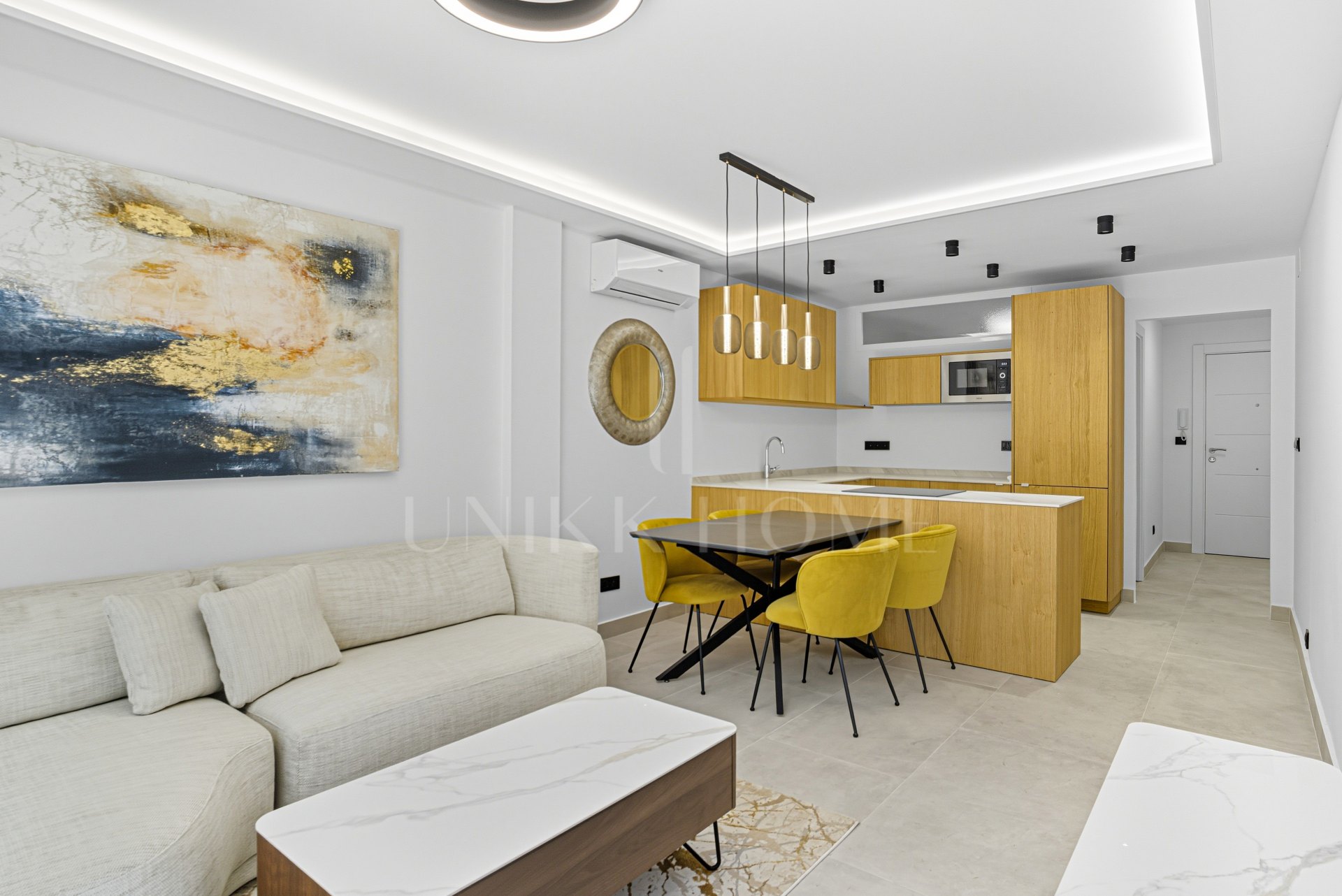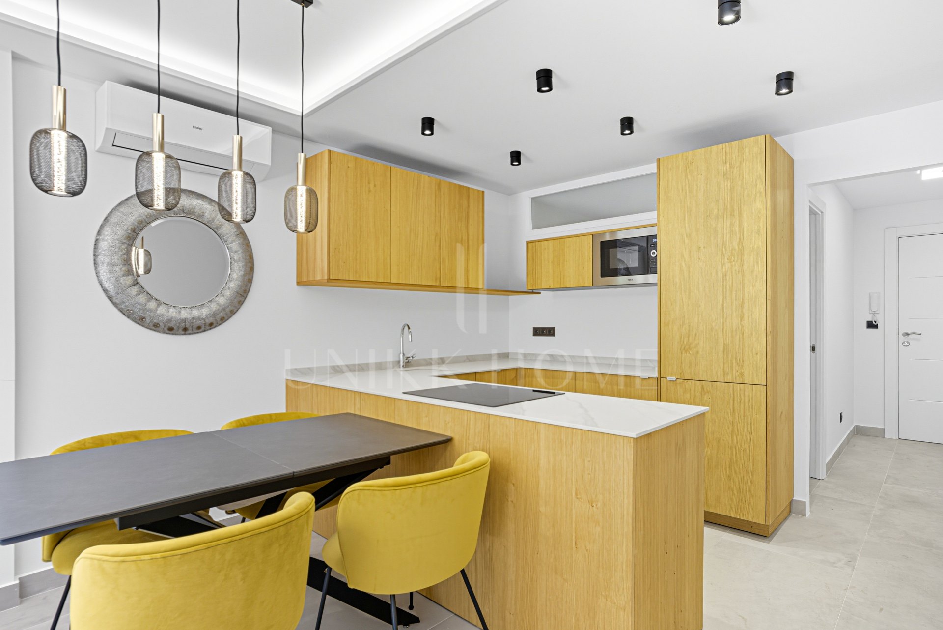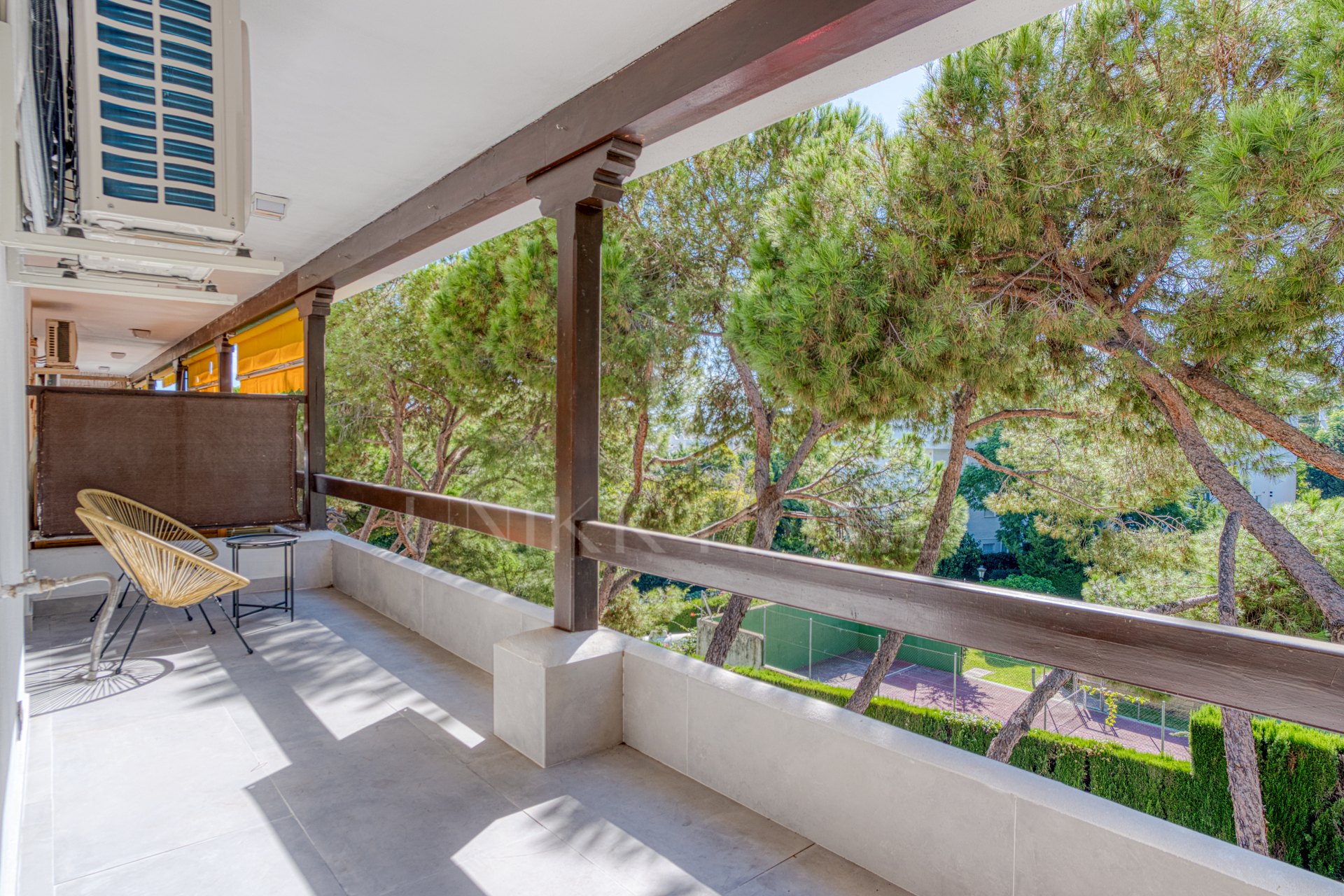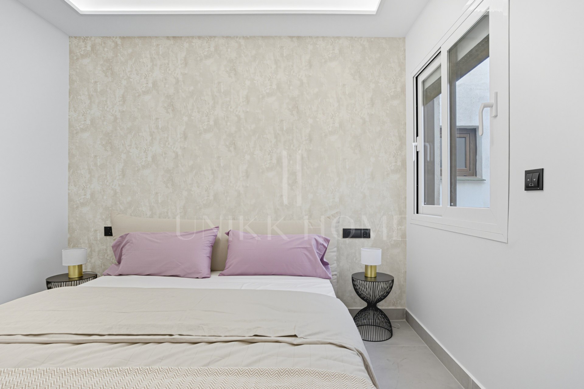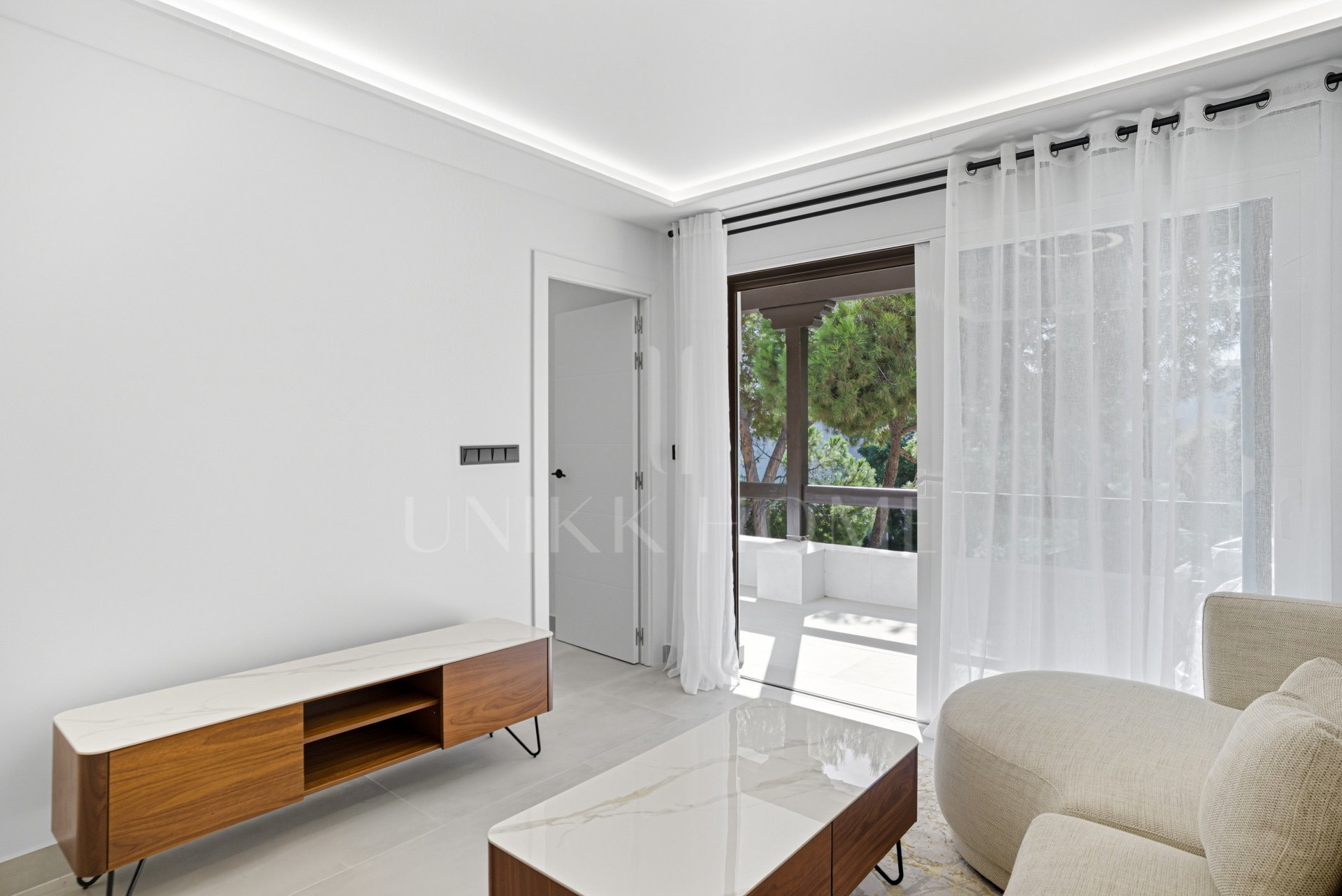This exceptional three-bedroom apartment is situated in a highly sought-after location on Marbella’s prestigious Golden Mile, within the charming urbanization of La Carolina Park. The community offers extensive landscaped gardens, two swimming pools, and a tennis court, while also being within easy walking distance to the beach, renowned restaurants, and all essential amenities. Recently renovated to a high standard, the apartment is west-facing and features a spacious open-plan kitchen and living area with modern fittings and air conditioning, seamlessly connecting to a private terrace perfect for outdoor dining or enjoying the afternoon sun. The master bedroom boasts an en-suite bathroom, complemented by two additional well-sized bedrooms and a second bathroom. In addition, the property includes a parking space for one car in the communal garage, making it perfectly suited for comfortable year-round living in one of Marbella’s most desirable areas.
