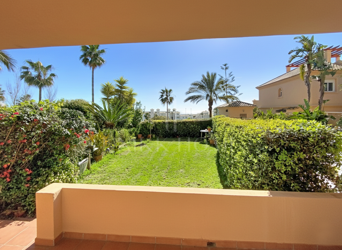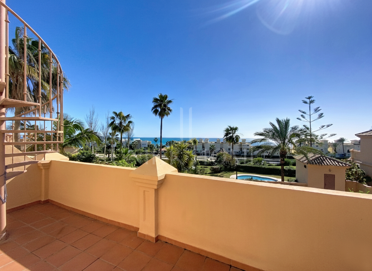 This beautiful property is located In Buenas Noches, Estepona West, just 10 minutes by car from Estepona City and less than 300 meters walking distance to the beach. South oriented with large windows, natural light floods into all corners of this property. The open plan kitchen has been fully furnished with new high-end appliances, and emerges with the large and bright living space that opens to the private terrace. It has 3 bedrooms, 2 full bathrooms and 1 guest toilet. The spacious 50m2 solarium offers panoramic sea views, and the ample private garden with sea views is perfect for drinking your daily cup of coffee or enjoying time in the privacy of your own home.