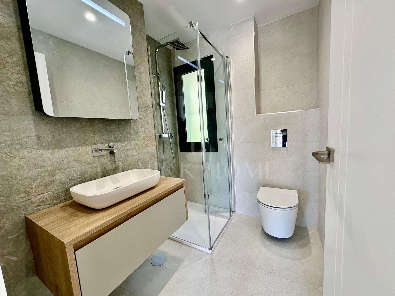Stunning renovated 3-bedroom apartment with panoramic sea views, located in the desirable area of La Quinta. This beautifully updated property offers a perfect blend of modern comfort and unbeatable location, just minutes from the best golf courses, Puerto Banús, and the beach. The apartment features 3 bedrooms, 2 bathrooms, a spacious open-plan kitchen, and a bright living-dining area with direct access to a generous terrace boasting breathtaking views of the sea and mountains. Renovated throughout with high-quality materials, the apartment also includes a utility room for added convenience. The complex offers covered community parking and access to two swimming pools, all situated right next to La Quinta Golf Course. Ideal for golf lovers or those seeking a peaceful home close to Marbella’s vibrant lifestyle.