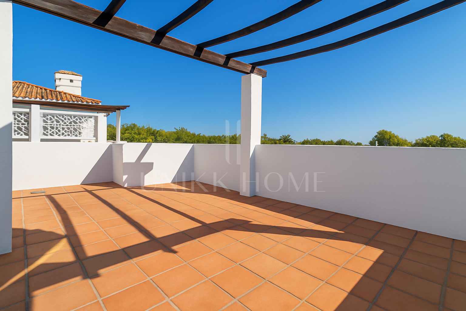 Incredible, beautifully renovated two bedroom penthouse in the gated community of Jardines de Andalucía, Nueva Andalucia