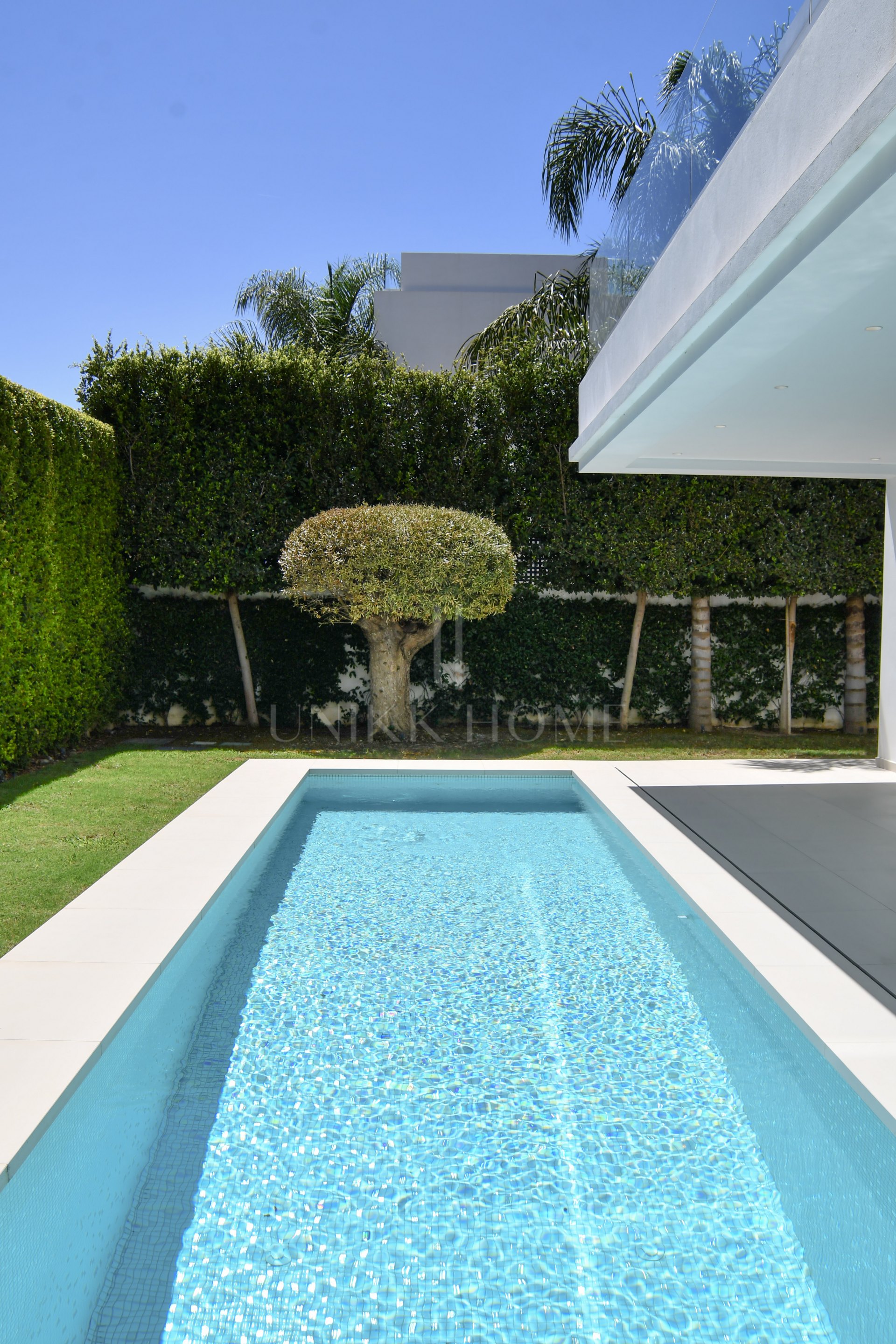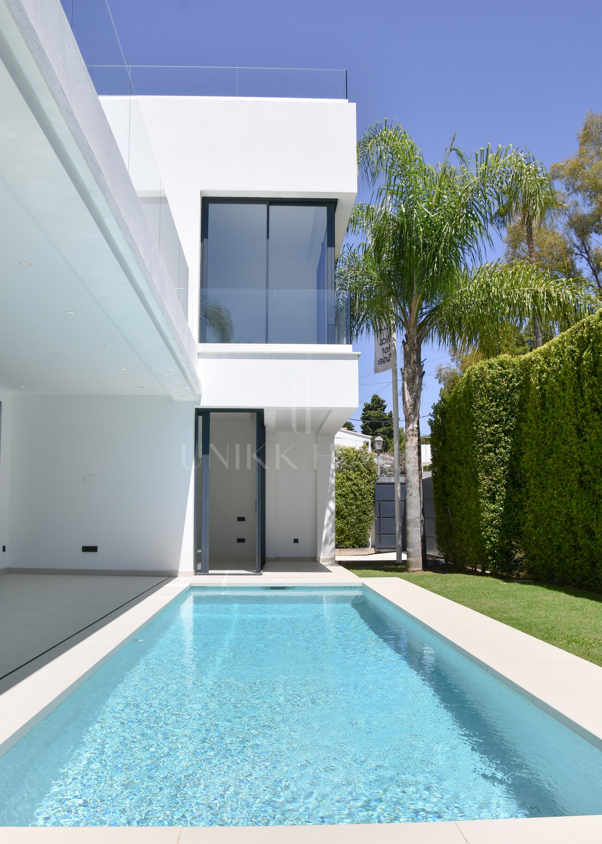 A marvelous new modern villa for sale is located in one of the most luxurious residential areas in Marbella – Golden Mile, in a secure urbanization Rio Verde, just 100 meters from the beach.
