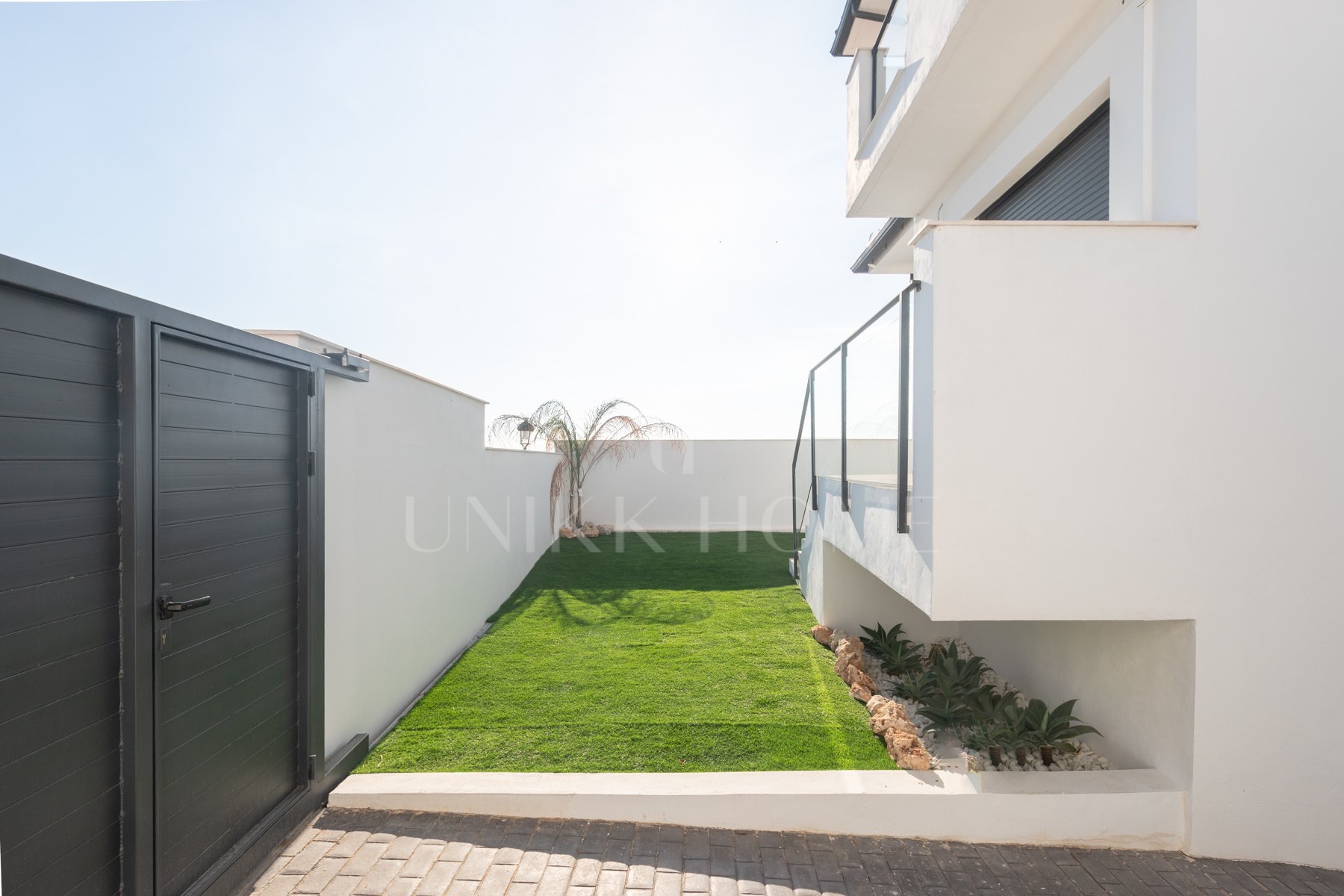 Los jardines privados permiten disfrutar del clima mediterráneo durante todo el año, con la posibilidad de personalizar zonas de descanso, comedor exterior o incluso instalar una piscina. Las vistas abiertas al mar y al paisaje natural convierten a estas viviendas en un refugio perfecto para desconectar o vivir todo el año.