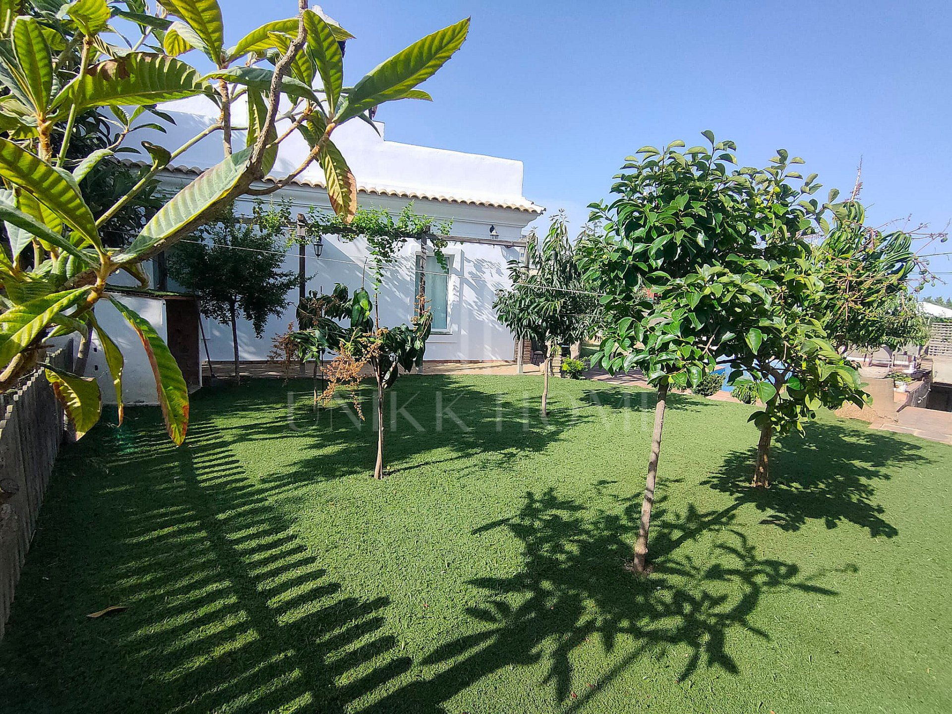 La villa se asienta sobre una generosa parcela con jardín privado, zona de barbacoa, una piscina de más de 40 m² y un pequeño huerto. Todo ello en un entorno tranquilo que ofrece privacidad, zonas verdes y a tan solo un corto paseo de la playa.