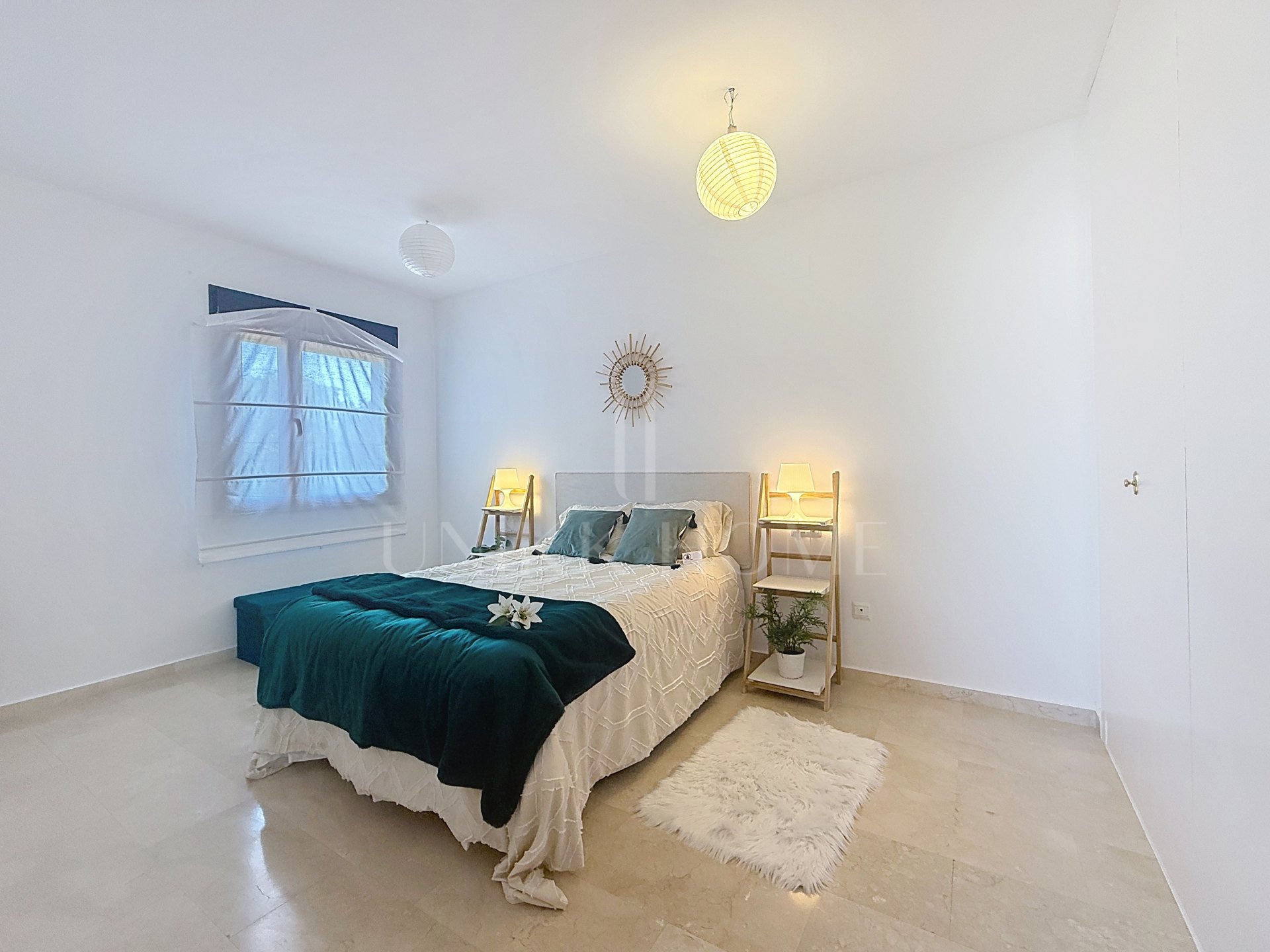 Entre los extras que ofrece la propiedad, destacan el aire acondicionado, suelos de mármol, puerta blindada y acceso mediante ascensor. El edificio dispone de zonas comunes como piscina, jardín maduro y garaje comunitario con plaza de aparcamiento incluida. La vivienda se encuentra en una zona de fácil acceso, cerca del puerto, tiendas y colegios, lo que la convierte en una opción práctica y cómoda para quienes buscan calidad de vida en el centro de Estepona.