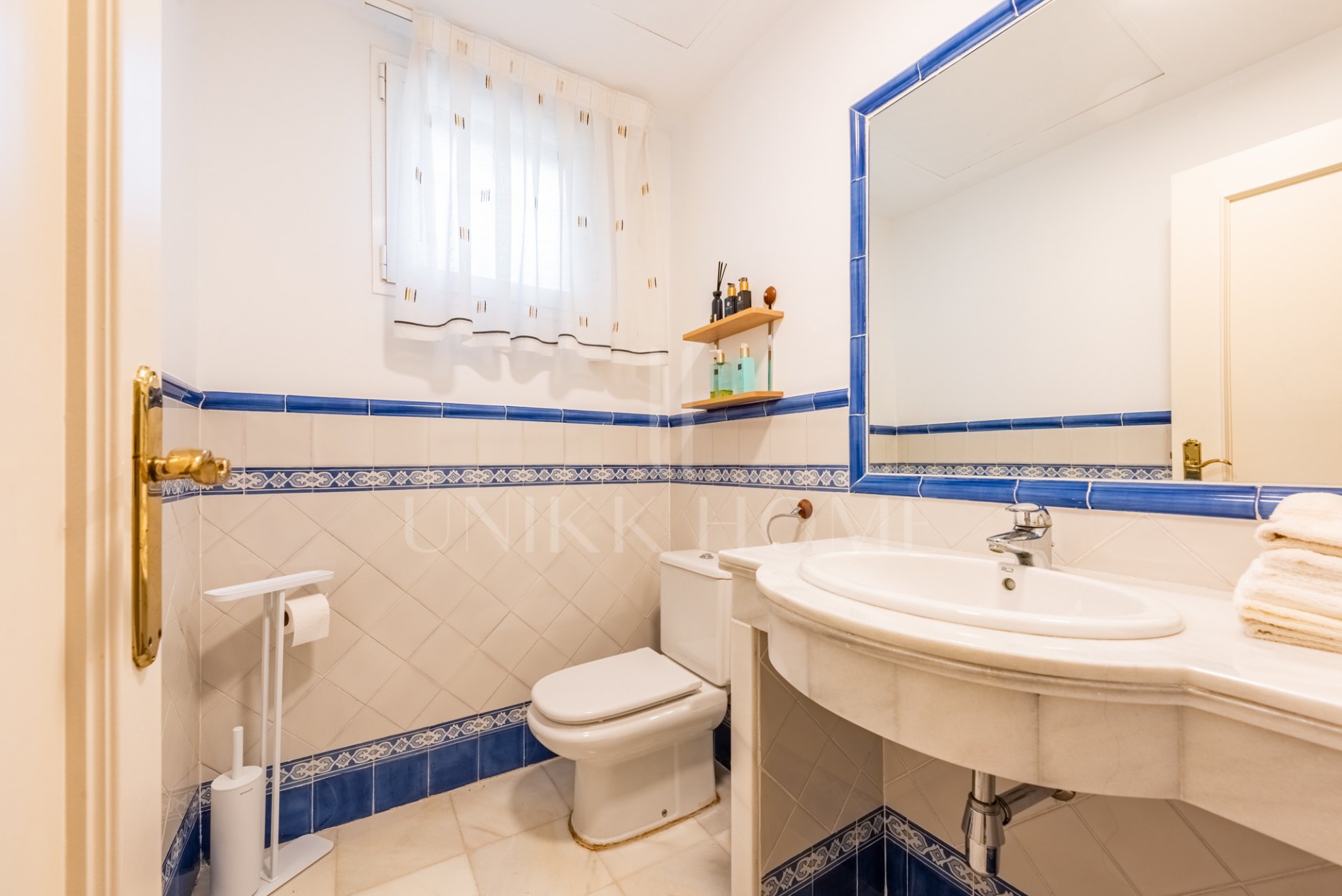 Construida en el característico estilo andaluz rústico y colorido por el que es conocida La Perla de la Bahía, la propiedad cuenta con materiales de alta calidad, incluyendo calefacción por suelo radiante en la planta baja y en todos los baños, garantizando confort durante todo el año.