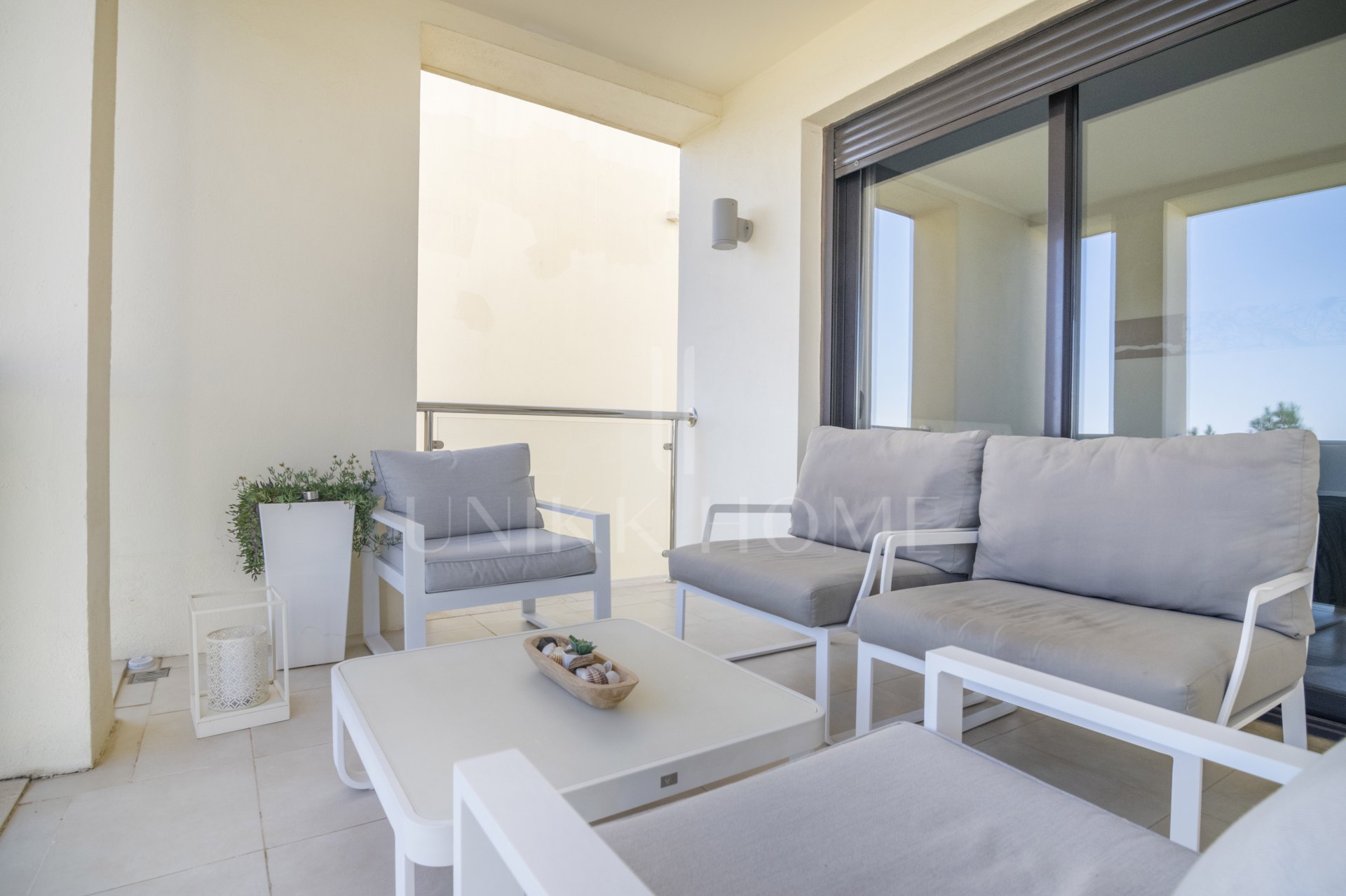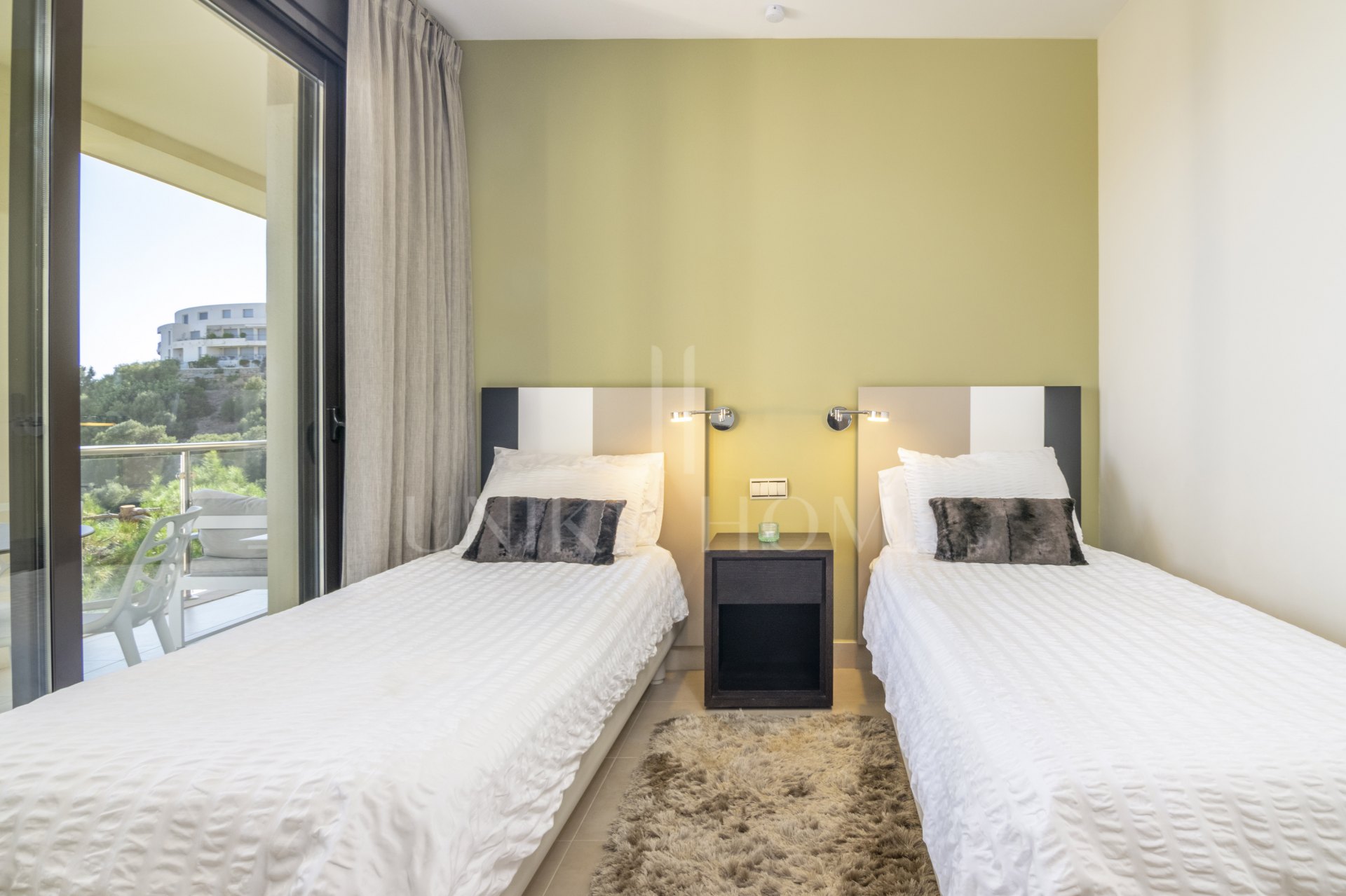 Elegante y moderno apartamento de dos dormitorios en el exclusivo Samara Resort en Marbella con impresionantes vistas panorámicas al mar