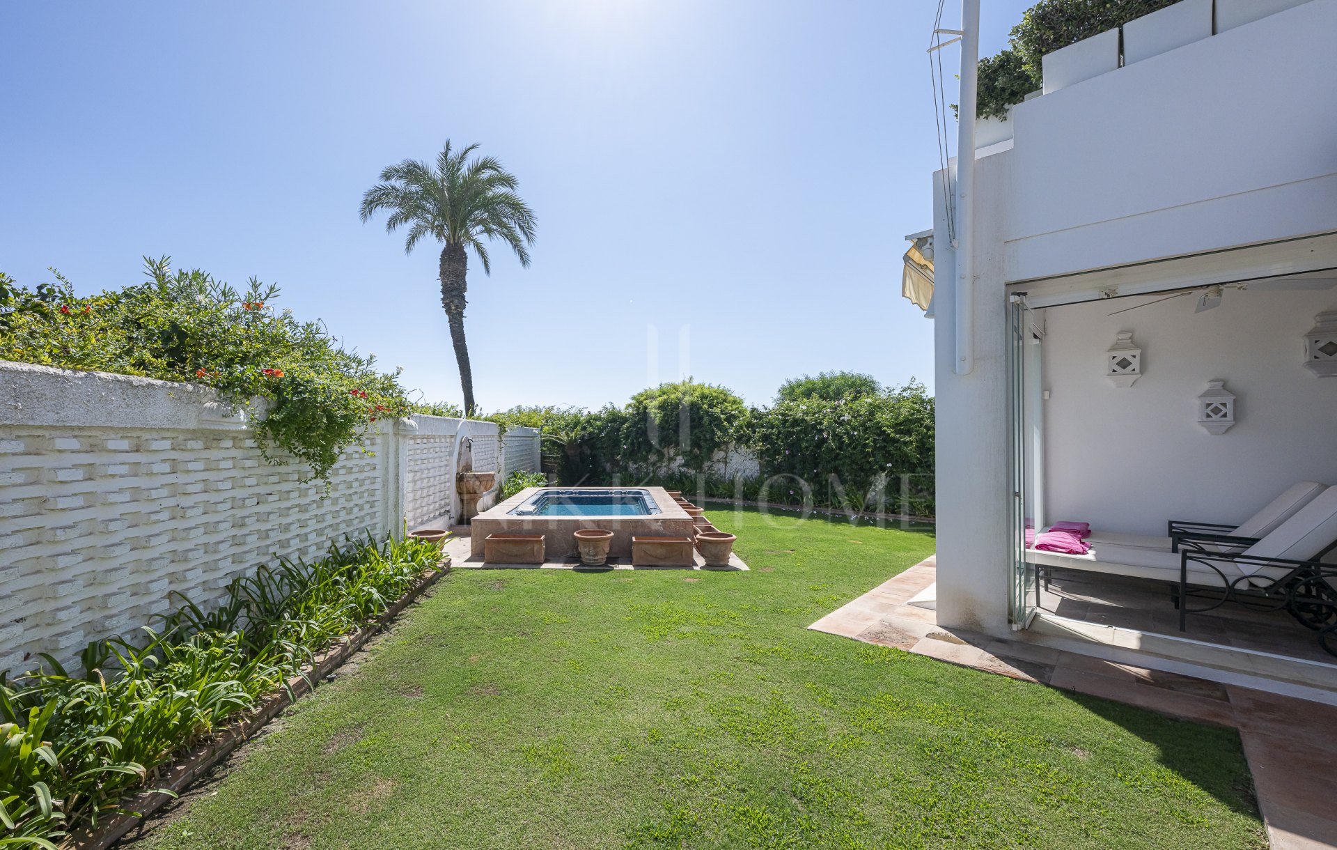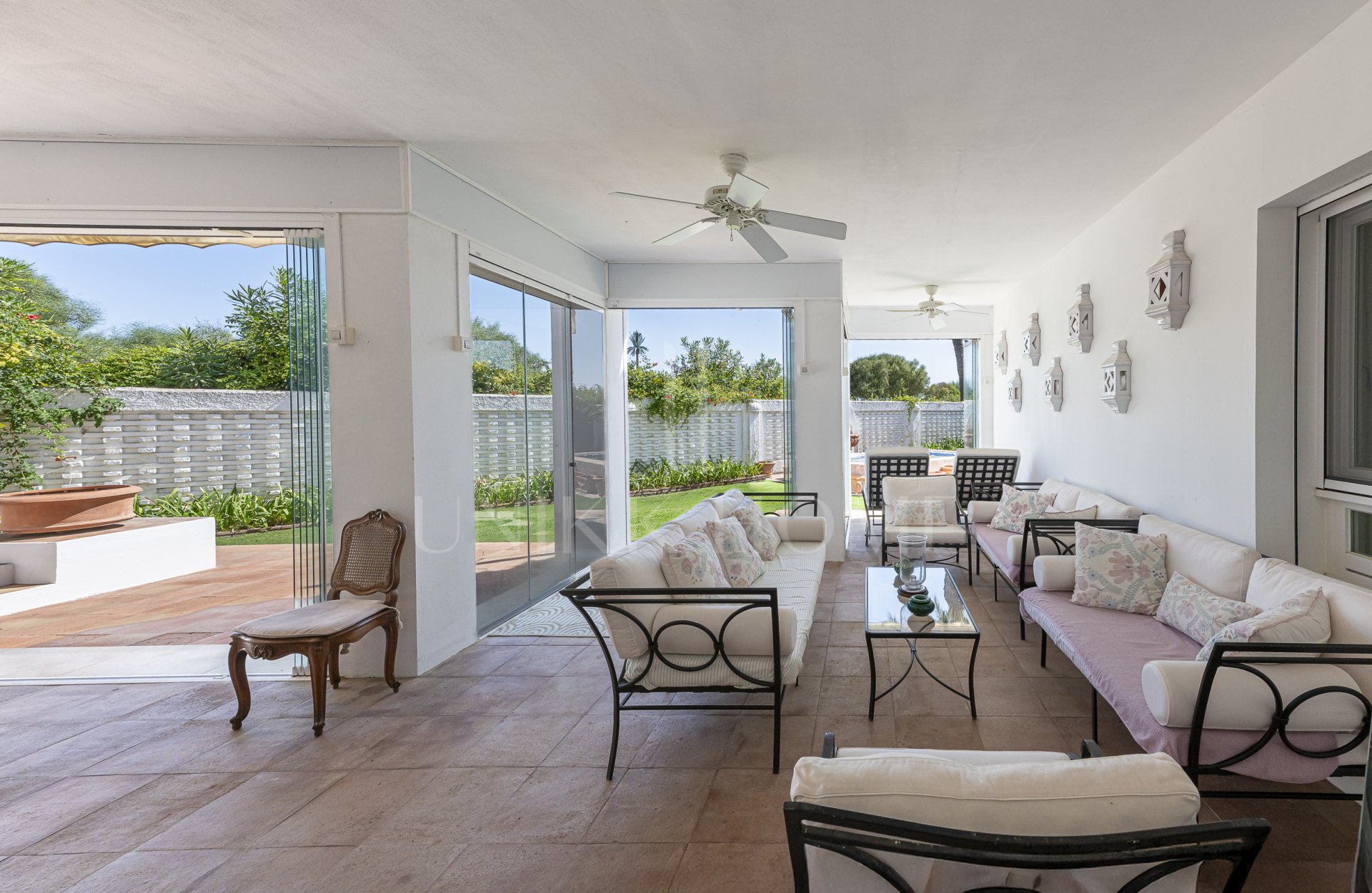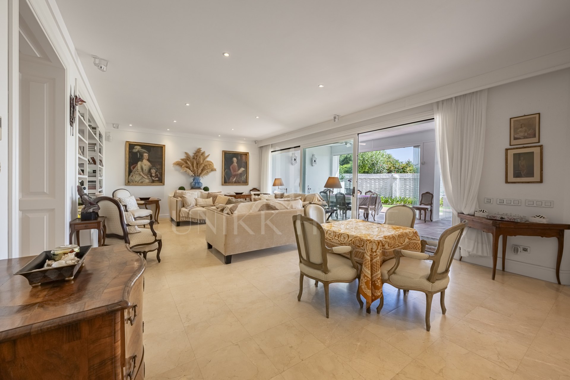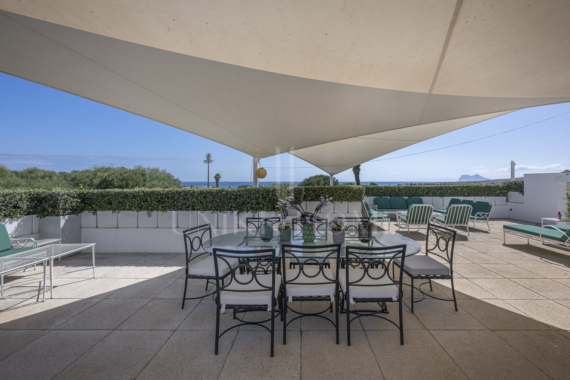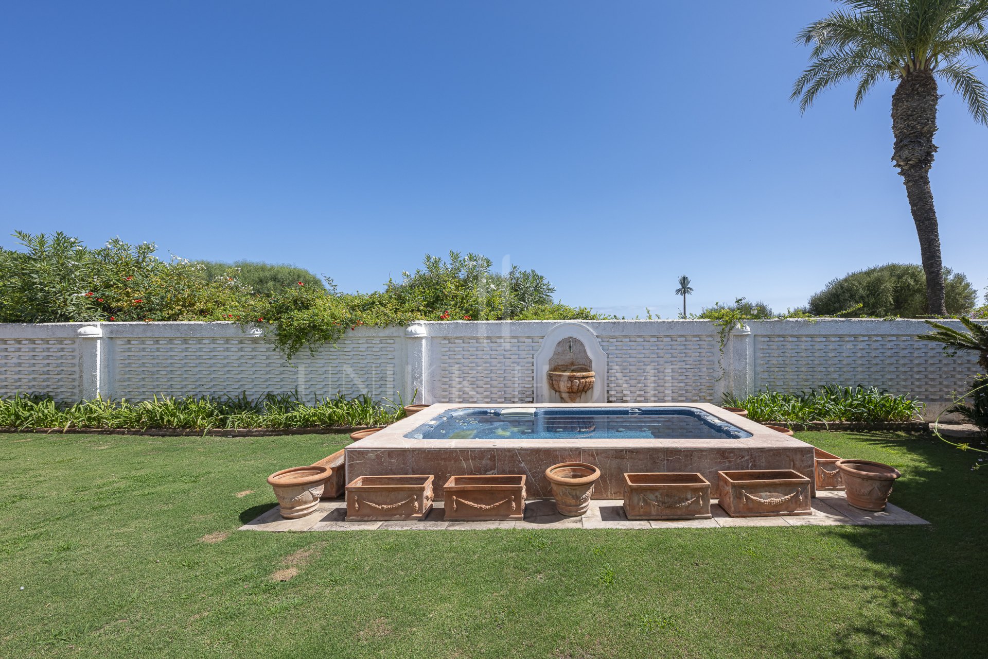 Una de las muy pocas propiedades frente a la playa en Sotogrande, situada en la prestigiosa urbanización cerrada “Bungalows”, junto al Real Club de Golf de Sotogrande y a solo metros de la playa.